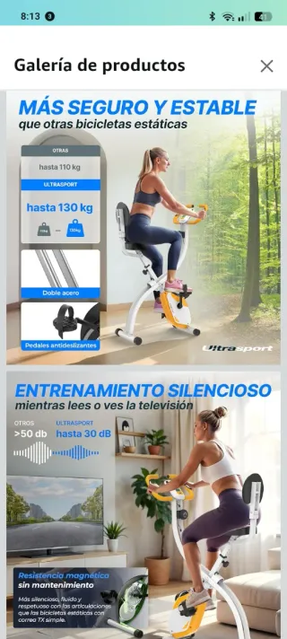 Bicicleta estática plegable de la marca Ultrasport, ideal para entrenamientos en casa. Su diseño permite guardarla fácilmente. Color blanco y amarillo huevo. Como nueva ya que prácticamente no se usó. Nueva vale unos 150 euros. Yo la pongo a 39€ porque no funciona el sensor, aunque si el de control del pulso. De ahí este precio. Es para recoger a domicilio. De este producto voluminoso no hago envíos. - Sillín con espuma de confort. - Se adapta ergonómicamente. - Alivia la columna vertebral.