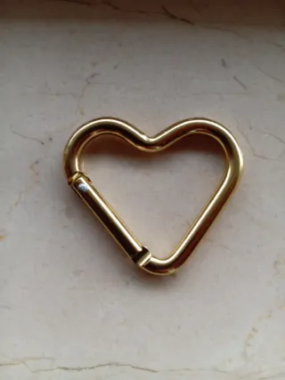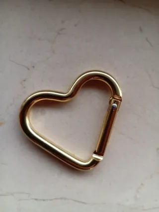 Un bonito mosquetón con forma de corazón. - Diseño en forma de corazón. - Acabado metálico brillante.