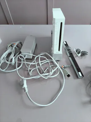 Consola de videojuegos Nintendo Wii en color blanco. - Incluye base vertical. -detector de movimiento - 6 mandos de la wii - Mando volante para Mario kart - 12 juegos -caja original Se puede vender todo junto o separado, se admiten ofertas FUNCIONA PERFECTAMENTE