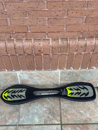 Waveboard Power Surfer con un diseño moderno y llamativo. - Plataformas con agarre antideslizante. - Diseño en negro con detalles en verde lima.