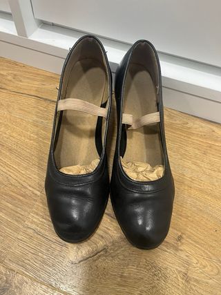Zapatos para bailar flamenco de oiel y en color negro, talla 39, con clavos en tacones y puntas, y en perfecto estado.