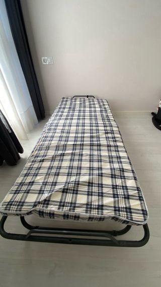 Cama plegable de 80x180 cm, lista para usar. - Estructura metálica resistente. - Somier de láminas. - Colchón incluido.
