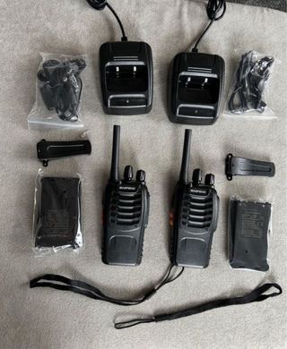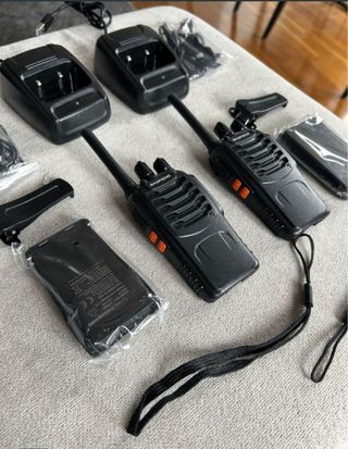 Set de dos walkie talkies inalámbricos portatiles, Incluye todo lo necesario para su Uso Nuevos, a estrenar - Dos walkie talkies. - Dos bases de carga. - Dos baterías. - Dos clips para cinturón. - Dos correas de mano. - Dos adaptadores de corriente. - Ideal para árbitros - Distancia entre 2 y 5 kilómetros Más accesorios en mi perfil