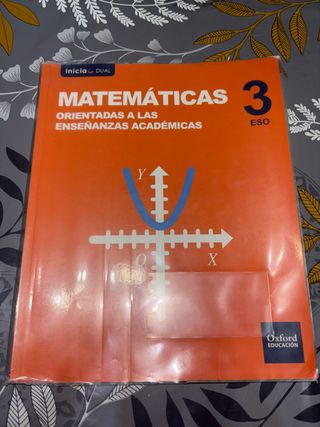 Libro de matemáticas de 3 ESO en muy buen estado, si tiene algo escrito esta a lapiz. Unico libro y esta forrado