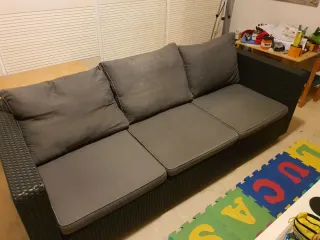 Sofá Allibert de 3 plazas, usado solo en sala de juegos interior. Buen estado general, con ligera decoloración en algunos cojines (ver fotos). Estructura resistente tipo ratán sintético. El resto en perfectas condiciones. 📍 Solo recogida 🚫 No envío Allibert 3-seater sofa, used only in indoor games room. Good overall condition, with slight discolouration on some cushions (see photos). Sturdy synthetic rattan frame. The rest is in perfect condition. 📍 Collection only 🚫 No delivery