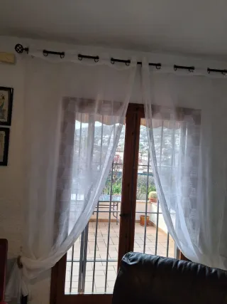 Juego de barras para cortinas con un diseño elegante. -Se regalan las cortinas - Barras de metal negro. - Incluye soportes y remates. -2 mde ancho