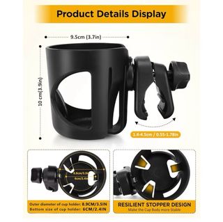 Sujetavasos universal de la marca Bundlepro, diseñado para acoplarse fácilmente a cochecitos de bebé, sillas de paseo, carritos, sillas de ruedas y bicicletas. - Color negro. - Diseño abierto para fácil acceso. - Mecanismo de sujeción ajustable. Muy poco uso