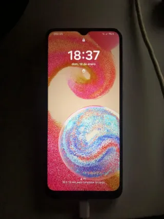 Teléfono móvil Samsung A04e. - Pantalla con diseño de gota. - Conexión para carga. -Precio poco negociable