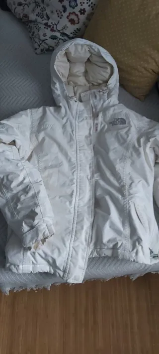 Chaqueta The North Face en color blanco. Ideal para el frío. Se vende con cremallera rota,por eso su precio. - Diseño con capucha. - Cierre de cremallera frontal. - Bolsillos laterales.