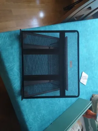 Elevador para el portátil. Tiene unos 10 años pero no le veo ningún desperfecto. Tiene distintas alturas y no pesa mucho. Tiene base de rejilla para la ventilación. También se podría usar para libros o documentos. - color negro