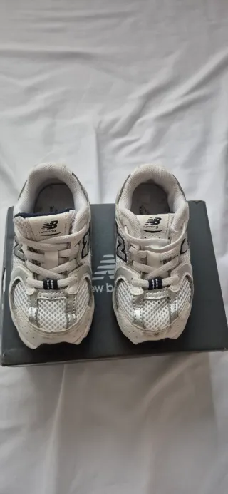 Zapatillas deportivas para bebé de la marca New Balance 530 - Color blanco y plateado. - Cierre cordones elasticos - Diseño transpirable. - Tañña 22.5