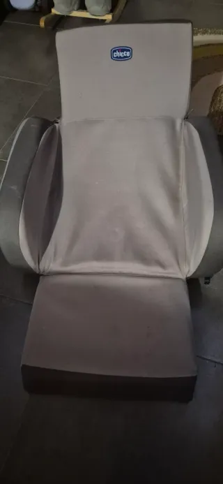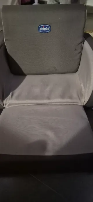Sillón reclinable de la marca Chicco, ideal para bebés. Su diseño es cómodo y acolchado. - Color gris y negro. - Logo de Chicco visible en el respaldo. - La funda se puede quitar para lavarlo
