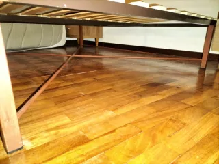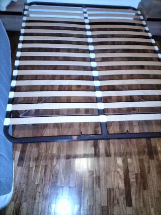Base de cama resistente y duradera. - Estructura principal de metal. - Láminas de madera para el soporte del colchón. -refuerdo en base de patas con x metálica para mucho peso o para poner madera y usar d almacenaje.