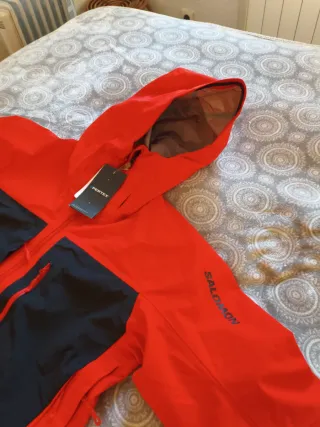 Chaqueta de esquí Salomon en color rojo y negro. Diseño moderno y funcional. - Capucha integrada. - Cremallera frontal. - Bolsillos con cremallera.