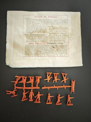 Lote de figuras de plástico de Comandos Franceses de Montaplex, con su colada original. - Figuras de soldados franceses de la Segunda Guerra Mundial. - Incluye sobre vacio - Ideal para coleccionistas y aficionados a la historia militar.