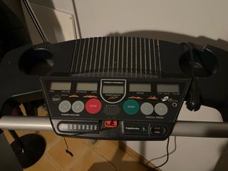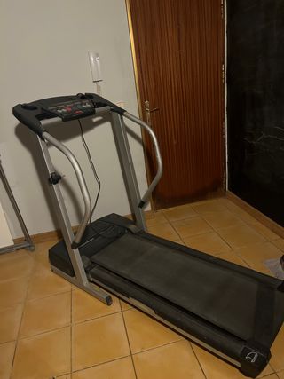 Cinta de correr con diseño plegable para facilitar su almacenamiento. - Estructura metálica. - Superficie de carrera negra. - Panel de control con botones. Es antigua, pero no tiene mucho uso, ha estado guardada años.