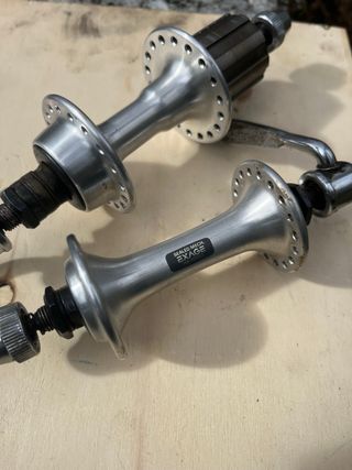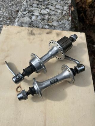 Par de bujes Shimano Exage de 7 velocidades en color plateado. - Material: Aluminio. - Cierre rápido incluido. Están en buenem estadiby todaban bien pero seria recomendable un engrase. Perfectos para restaurar bicis clásicas.