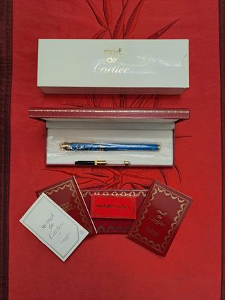 Pluma estilográfica Cartier Must color azúl laque cobalt. Con cartucho recargable. Buen estado. Descripción: Stylo Plume M. Must Laque Cobalt. Envío habilitado. NO me desplazo.