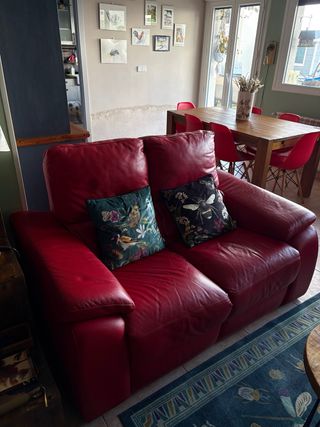 Cómodo sofá de dos plazas. En perfecto estado , habria que venir a recogerlo a Miraflores de la Sierra, se necesitaria una furgoneta ya que no se desmonta Esta en perfecto estado, lo dejo a un precio ridiculo asi que nada de ofertas absurdas porfavor. Medidas sofá ancho: 160 fondo: 95 alto: 96 - Tapicería de piel. Facil de limpiar