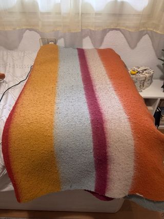 Manta de Primark con un diseño de rayas muy bonito. Es cómoda y calentita, ideal para estar a gusto en casa. - Diseño a rayas. - Tacto suave.
