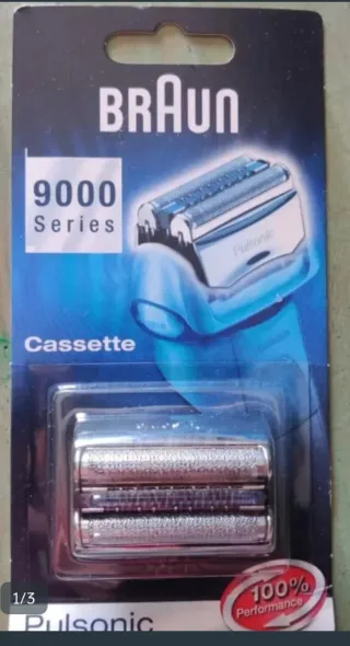 Cassette de recambio original para afeitadora Braun Serie 9000 (Pulsonic) y serie 70s 7. Está en su embalaje original y sin abrir. Ofrece un rendimiento óptimo. Fabricado en Alemania. Tengo varias unidades, precio 12€ unidad si te llevas 3 o más. Se realizan envíos