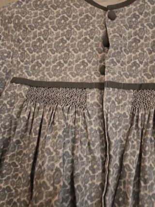 Blusón juvenil con estampado floral y detalles en gris. Ideal para combinar con pantalón de pana Medidas en la foto..talla 10/12 - Diseño con cuello redondo y cierre de botón. - Cuerpo fruncido con smock. - Mangas largas con puño. - Bajo con vuelo.