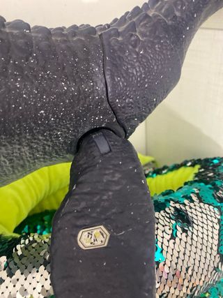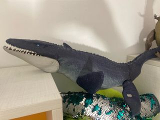 Figura de juguete de dinosaurio marino, ideal para coleccionistas o para jugar. - Diseño detallado. - Color azul oscuro con escamas. - Mandíbula articulada. Mosasurio original de matel con huella