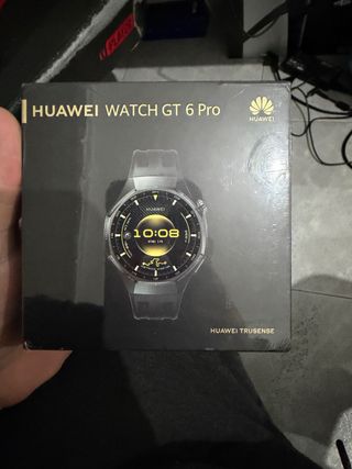 Totalmente nuevo!! Precintado, con factura de compra! Reloj inteligente Huawei Watch GT 6 Pro. - Diseño elegante en negro y dorado. - Pantalla con detalles en dorado.