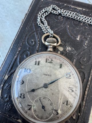 Este reloj de bolsillo MIRTO vintage es un reloj mecánico magníficamente conservado, fabricado en plata 800, que data aproximadamente de los años 30-40. Raro y elegante, cuenta con una subesfera clásica para los segundos y cuerda manual. La caja interior lleva el sello «800», lo que confirma su contenido genuino en plata. ✅ Funciona perfectamente: se da cuerda, marca las horas y mantiene la hora. ⏳ Producción estimada: alrededor de los años 30-40. 🥈 Caja de plata 800 (marca europea en el interior). 🕰 Movimiento mecánico de cuerda manual. 🎩 Pátina vintage, con signos visibles de antigüedad. 🔍 Marca: MIRTO, producción rara o perso