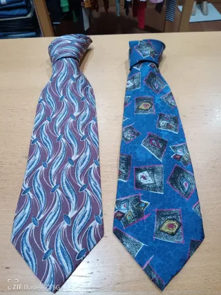 Conjunto de dos corbatas nuevas, listas para estrenar. Lote de 2 corbatas, nuevas a estrenar con etiqueta. Calidad superior!!! Te encantarán y le encantarán!!! - Diseño floral en tonos azules y burdeos. - Estampado geométrico con figuras en tonos azules, rojos y verdes.