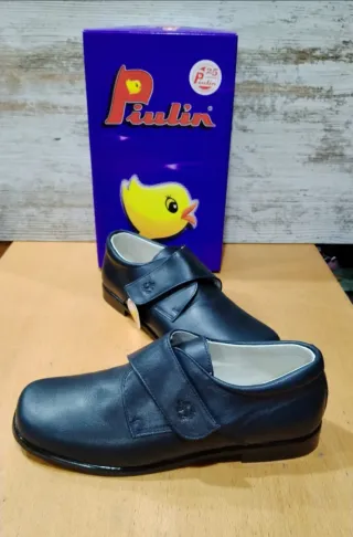 Zapatos tipo quiova para niño, elaborados en piel. Zapatos de niño, tipo quiova en azul marino, de piel interior y exterior. Con trabilla de velcro. Tallas 35 y 36. El número 36 mide de largo de extremo a extremo 24 y medio y el 35 mide 24cm Marca piulín Nuevos a estrenar con etiqueta y caja. Tú niño estará comodísimo!! Para comunión o evento especial!! Fabricados en España Muy buenos!! - Cierre de velcro. - Diseño clásico y cómodo.