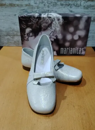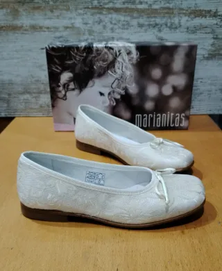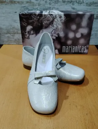 Preciosos zapatos para niña de la marca Marianitas, elaborados en piel de napa. Zapatos, tipo bailarinas de niña, de piel de napa. Piel labrada con lazo central. Interior también de piel. Nuevos sin estrenar con etiqueta y caja. Ideales para la comunión. Para vestir en cualquier evento. Numeros 34, 35 y 36. Fabricados en España.Muy buenos!! Ideales para tus niñas!! - Diseño con un delicado estampado floral. - Adorno de lazo en la trabilla central.