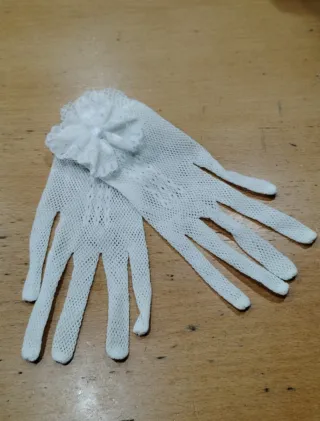 Elegantes guantes para comunión. - Diseño delicado en maya fina. - Longitud hasta la muñeca. Bonitos guantes de comunión para niña. De red con un detalle de flores central. Nuevos a estrenar!! Con etiqueta Le maravillaran!!
