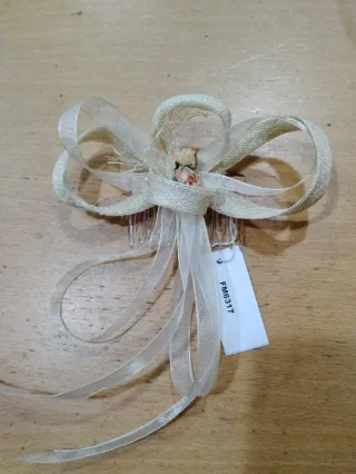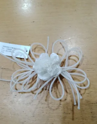 Pinza decorativa con un bonito lazo, ideal para Comunión o algún evento especial - Diseño con cintas y pequeñas flores. - Adorno con detalles brillantes. Nueva con etiqueta. Te maravillará!!