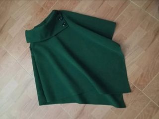 LEER DESCRIPCIÓN COMPLETA! 👇 Poncho / capa Color verde (Como en fotos del anuncio) Ideal para Otoño e Invierno Elegante y muy favorecedora. El cuello es espectacular! decorado con tres botones grandes Se puede poner de varios formas. Es calentita y gordita. Material paño de gran calidad No se arruga! Los picos dan más abajo del culete (Cubren el trasero) Es talla única, sirve desde una 34 a una 42 (No más!) Está en perfectas condiciones ya que es NUEVA sin estrenar! Ver TODAS las FOTOS ampliando imágenes del anuncio. •Absténganse de hacer ofertas ❗PRECIO NO NEGOCIABLE.