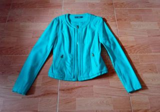 LEER DESCRIPCIÓN COMPLETA! 👇 Cazadora para mujer semi-entallada. Muy favorecedora! El color es espectacular! Color VERDE TURQUESA •ATENCIÓN: (EN LA ÚLTIMA FOTO PONGO EL COLOR REAL👆) De cuello redondo,cierra por cremallera dorada. Tiene 2 bolsillos que cierran con cremalleras doradas. Tiene forro interior! IMPERMEABLE,CALENTITA Y MUY LIGERA! Es semi-entallada,lo que hace que siente muy bien,realzando la sirueta. Material polipiel/poliéster Es talla"S"equivale a una 36 Nunca se usó. Para ver fotos ampliar imágenes del anuncio. •Ver última foto para ver el color real! PRECIO DEFINITIVO ❗No negociable.