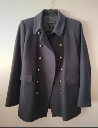 Elegante abrigo de Zara con un diseño clásico y botones dorados. - Doble botonadura. - Bolsillos frontales. - Cuello solapa.