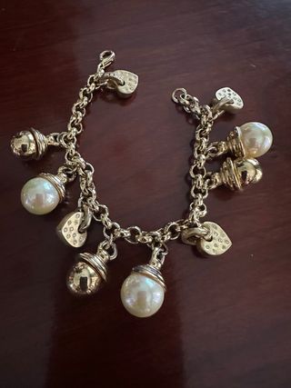 Pulsera de bisuteria de calidad (tiene peso, no es plasticosa) - Abalorios con forma de perla. - Dijes con forma de corazón. - Cadena con eslabones.