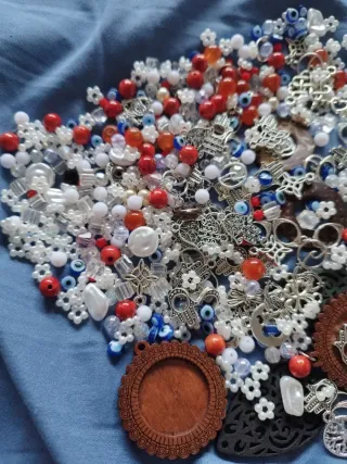 Conjunto variado de abalorios para crear tus propias joyas. - Incluye cuentas de diferentes tamaños y formas. - Charms metálicos con diseños. - Elementos decorativos para bisutería.