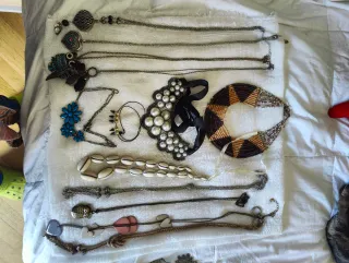 Conjunto variado de bisutería. - Collares y pulseras. - Diseños diversos. - Incluye piezas con abalorios y detalles metálicos.