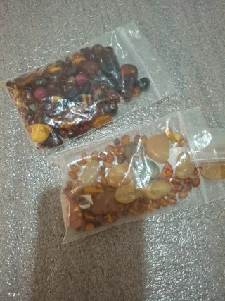 Lote de abalorios para la creación de bisutería y manualidades. - Variedad de formas y tamaños. - Ideal para proyectos creativos. - Tonos morados y multicolores. -Son 7 de piedra nacar y 5 bolitas pequeñas.