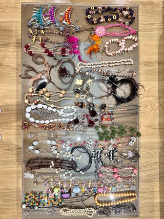 Conjunto variado de bisutería, ideal para complementar cualquier atuendo. - Incluye collares y pulseras. - Diseños diversos con cuentas y abalorios.