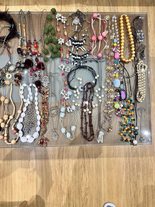 Conjunto variado de collares de bisutería. - Diseños diversos y llamativos. - Piezas con abalorios y detalles. - Estilos bohemios y étnicos.