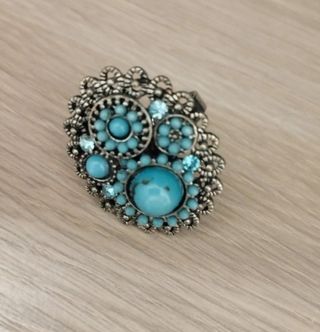 💠 Anillo de bisutería fina, metal color plata y turquesa. 💠 Diseño floral con circonitas. 💠 Ajustable 💠 Compuesto por cristales, abalorios y perlas color turquesa 💠 Anillo 💍 Vintage. **Sólo envíos #anillomujer #anillo #anilloajustable #anillobisuter