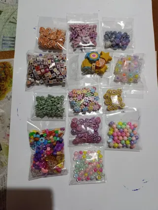 Lote de abalorios variados. - Diseños diversos. - Ideal para manualidades y bisutería.