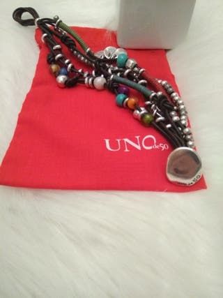 Chulísimo collar largo de la marca española Uno de 50 con cordón de cuero y abalorios de cristal de vivos colores y otros de metal bañado en plata. Envío a cargo del comprador. No se admiten devoluciones.