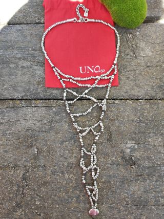 Original collar largo de la marca española Uno de 50 con abalorios de metal bañado en plata, aprovecha esta oportunidad ya que se trata de un modelo difícil de encontrar! Envío a cargo del comprador. No se admiten devoluciones.