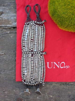 Collar largo de la marca española Uno de 50 modelo Rocanrol de cordón marrón y abalorios de metal bañado en plata con cierre de botón. También puedes encontrar el mismo modelo en corro en mi armario. Envío en bolsita de organza a cargo del comprador. No se admiten devoluciones. #Ajarbe