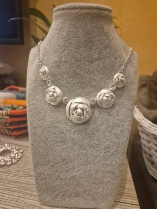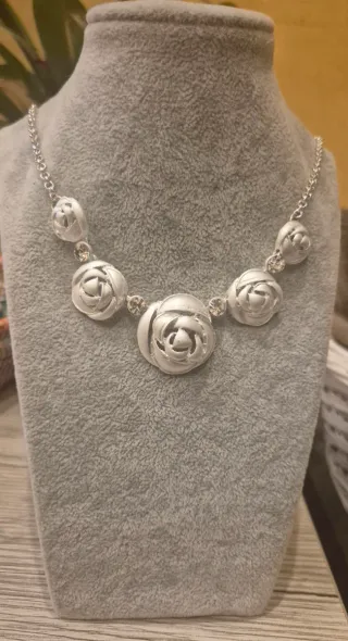 Collar plateado rosas y brillantes