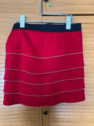 Falda roja con volantes y abalorios